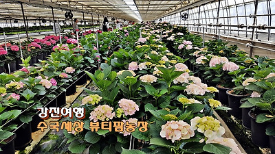 비닐하우스 재배가 가능하기 때문인데 지난 5월에 들렀던 강진의 한 수국 농장이 불현듯 생각났다.
