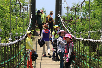 출렁다리에서 한군데 모이면 더 출렁거리지...