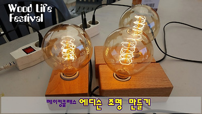 우드 메이킹 클래스에서는 목재 감성 에디슨 조명 만들기와 목재 커팅 보드 만들기 체험이 있었다.