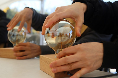 오늘 메이킹 클래스 에디슨 조명 만들기 체험에 참가한 분들 작품이 모두 모였다.
