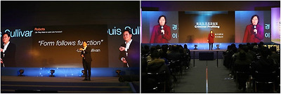 특히 청년희망 R&D 토크쇼에서는 세계적인 로봇 공학자 데니스 홍 교수가 ‘로봇, 지구를 구하다’라는 주제로 강연했는데요, 데니스 홍 교수는 지난 10년간 개발한 기상천외한 로봇들을 통해 아이디어는 어디에서 왔는지를 말하고 개발한 각종 로봇 경연 대회 참관기를 재치있는 입담과 몸짓으로 설명했는데요, 마법처럼 관중들의 눈과 귀를 사로잡았습니다.