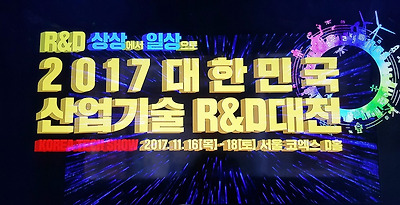 산업통상자원부가 주최하고 한국산업기술평가관리원(keit), 한국산업기술진흥원(kiat), 한국에너지기술평가원(KETEP)이 공동 주관한 '2017 대한민국 산업기술 R&D 대전'이 'R&D 상상에서 일상으로'라는 주제로 11월 16일부터 18일까지 코엑스 D 홀에서 열렸습니다.