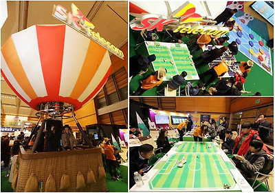 SK텔레콤 부스도 많은 사람이 줄을 서서 체험을 즐겼는데요, VR 디바이스를 착용하고 열기구를 가상 체험할 수 있는 전시존은 그야말로 인기최고였습니다. 열기구 한번 타려면 우리나라에서는 탈 수가 없죠? 외국까지 나가야 하는데요, 가상이지만 실제처럼 체험할 수 있었답니다.