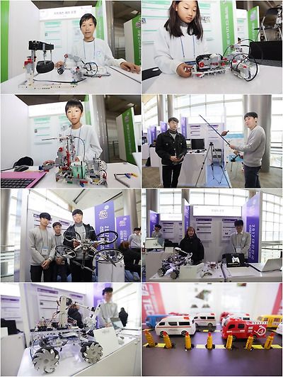 전시관 내부가 4차 산업혁명기술 체험으로 난리일 때 코엑스 D 홀 밖 로비도 시끌벅적했는데요, 임베디드 SW 경진대회와 산업융합 아이디어 경진대회 등이 열려 대한민국의 미래 주역들을 현장에서 만날 수 있었습니다.