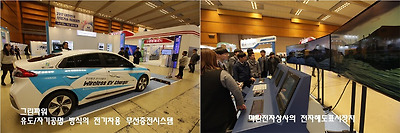 시스템, 소재부품, 에너지 등 신산업 분야 R&D 우수 신기술 및 신제품이 전시된 산업혁신관은 81개 산·학·연이 참가해 총 166개 부스 규모로 운영되었는데요, 대표적 전시품은 국내 최초로 무선전력전송 기술을 상용화한 (주)그린파워의 ‘유도/자기공명 방식의 전기차용 무선 충전시스템’과 마린전자상사의 ‘전자해도 표시장치’입니다.