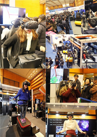 (주)이노시뮬레이션은 가상현실 기반의 시뮬레이터를 만들고 있는 선도 기업으로, R&D 대전에서는 가상세계를 체험해볼 수 있는 산업용 지게차, 굴삭기 시뮬레이터와 움직이는 의자로 생동감을 주는 VR 모션 시뮬레이터를 소개했는데요, 체험을 위해 길게 늘어선 관람객들로 초만원을 이루었답니다.