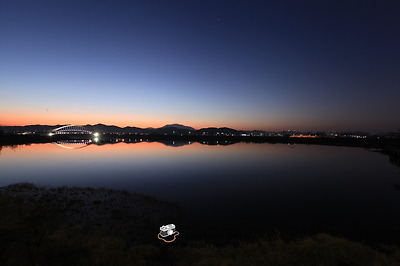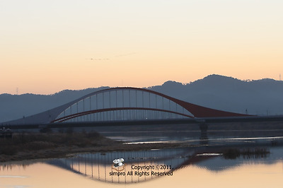 광주광역시 북구 월출동인데요, 영산강이 마치 호수처럼 잔잔한 곳이어서 반영도 예쁜 곳입니다.