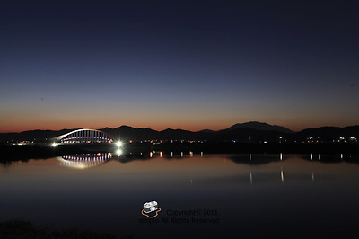 아직 조명이 꺼지기 전 지야대교의 야경도 담는데요, 동이 터 오는 것 같습니다.