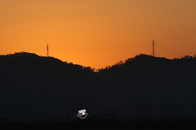 역시 예상대로 송전탑 사이로 떠오르군요.