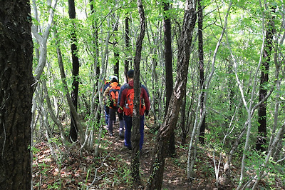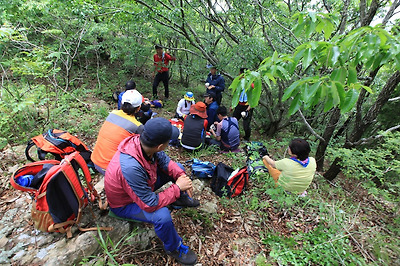 이 친구들이 앞서나간게 아니라 동석산 정상에서 지쳐 숲에서 쉬고 있었다는...