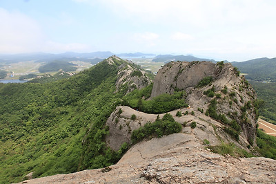 정상을 넘어서면 또다른 암봉이 쭉 늘어서 있어 저기를 어떻게 건너가나? 했지만 산기슭으로 난 우회로가 쭉 이어진다.