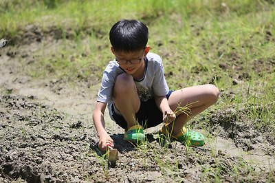 기계로 모를 심고 기계로 수확한 것만 보고 자란 아이들에게 이런 손 모내기는 문화적 충격입니다.