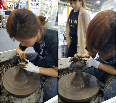 뱅글뱅글 돌면서 손만 살짝 댔을 뿐인데? 예쁘장한 도자기 소품이 만들어집니다.