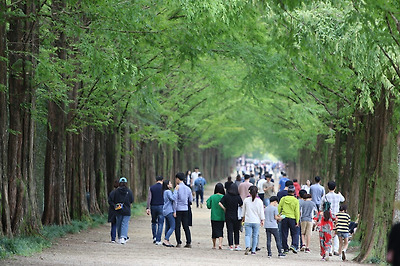 메타세쿼이아 길은 산책 겸 피크닉 장소로도 최고인데요, 대부분의 나들이 객들이 도시락을 싸서 벤치나 원두막에서 가족들과 함께 오붓한 점심을 즐기더군요.