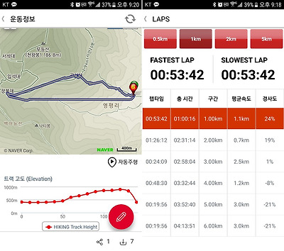 출발한지 1시간 만에 1.4km를 걸어 영평마을과 갈리는 삼거리에 도착했다.