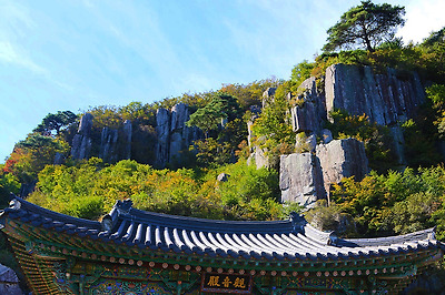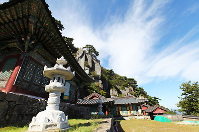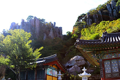 높다란 계단위로 일주문을 겸한 범종각이 있는데, 단풍이 물들 무렵이면 최고의 멋진 뷰를 볼 수 있다.