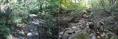 규봉암에서 장불재까지는 길이 두갈래인데 지공너덜과 석불암을 보려면 위길로 오르면 된다.