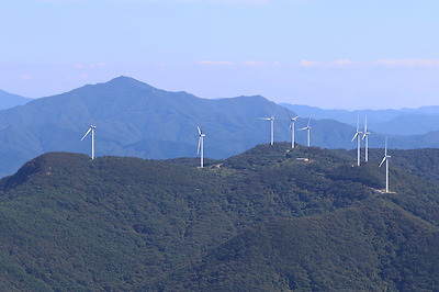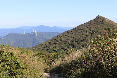 규봉암에서 당겨본 화순 별산 풍력발전소와 그 너머 모후산.