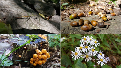 울창한 숲속길을 걸으면서 만난 야생화, 버섯, 도토리, 대벌레 등은 피로를 풀어주는 청량제와 같은 힐링이었다.