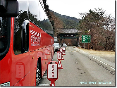 천은사 입구도 아닌 지방도에 바리케이트를 설치해 놓고 도로에서 한참 떨어져 있는 천은사를 보지도 않고 그냥 차량으로
