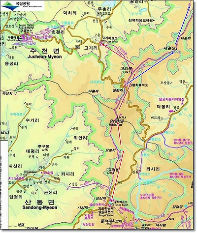 파란선은 5월달에 있을 동창회산악회의 코스다.