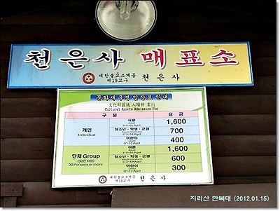 구례로 해서 성삼재로 올라갈려면 천은사입구에서 문화재관람료를 징수하니 성인은 1,600원, 청소년 700원 어린이 400원은
