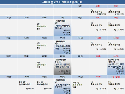 새내기 블로그 아카데미의 일정이 궁금하시죠?^^