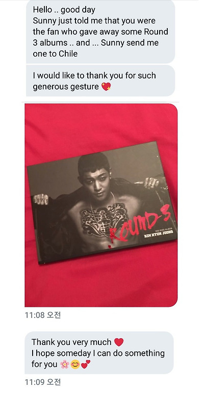 Sunny 언니에게 라운드3 앨범을 전해받았다는 칠레팬께서 트윗으로 소식 전해주셨어요.