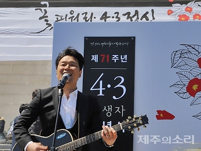 3일 4.3평화공원에서 열린 추념식의 마지막 순서는 가수 안치환의 곡 <잠들지 않는 남도> 제창이었다.