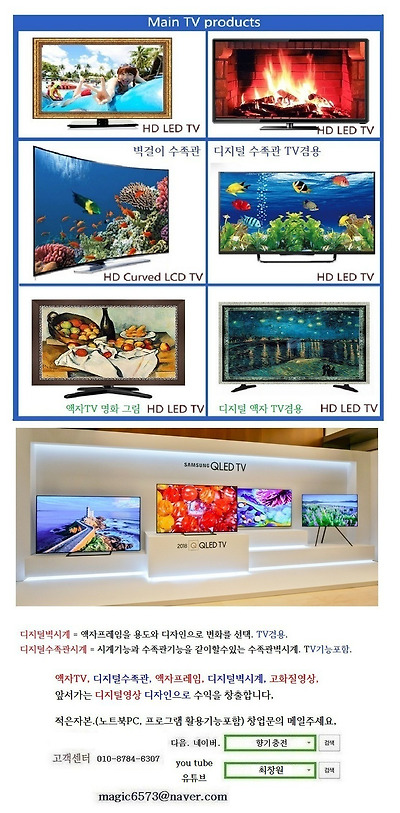 tv picture frame aquarium fireplace 액자 수족관 벽난로 동영상시계