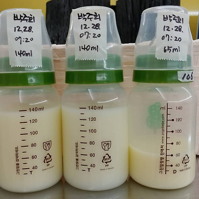 직수를 하면 양을 잘 모르니까 유축한 모유를 주로 먹였었는데