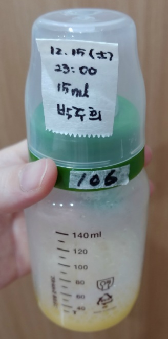 1회 수유량이 많다 보니 모유 100~120ml + 분유 60~80ml를 줄 때도 있고