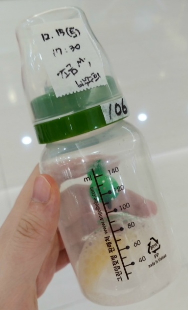 "냉장고에 106호 엄마꺼밖에 없어. 쌍둥이를 낳았어도 다 먹일 수 있었겠어. 엄마가 작은데 모유량이 많네.