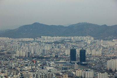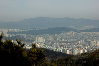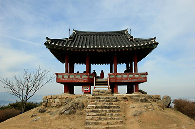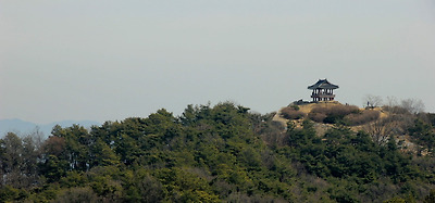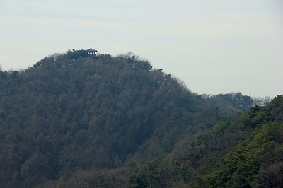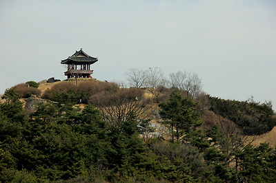 그 뒤로 보문산성의 정자가 조망된다.