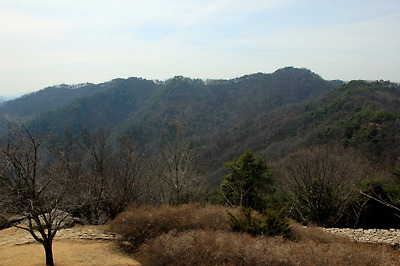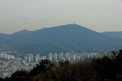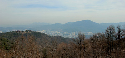 정상인 시루봉에서 1.1km거리의 보문산성을 바라보면서..
