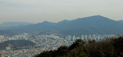동쪽으로 식장산과 그 옆으로 고리산(환산)이..