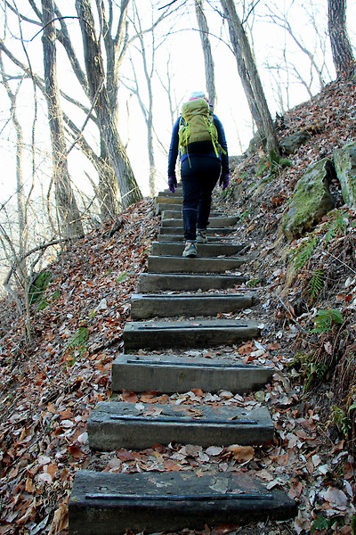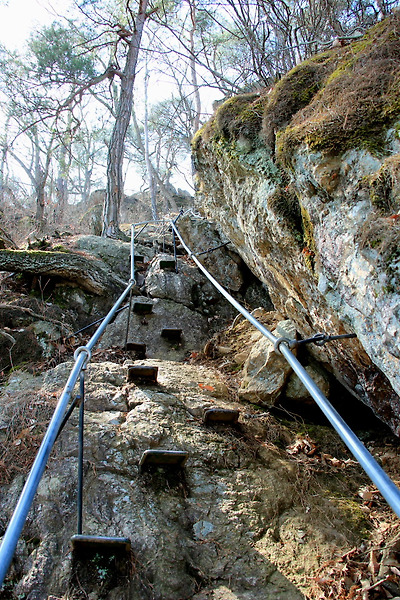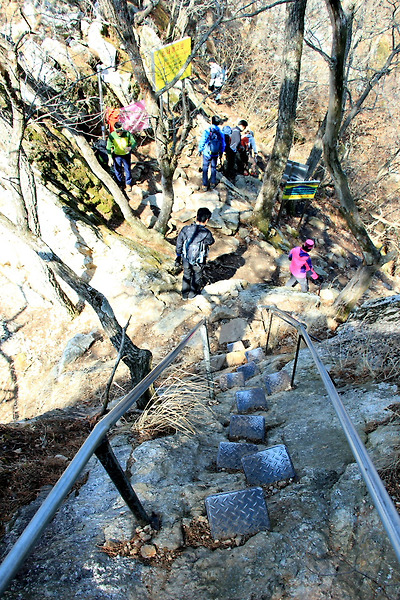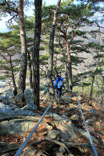 8봉에서의 하산길이 가파르고 줄곧 발 디딤판이 있다.
