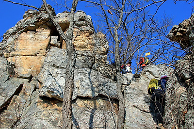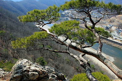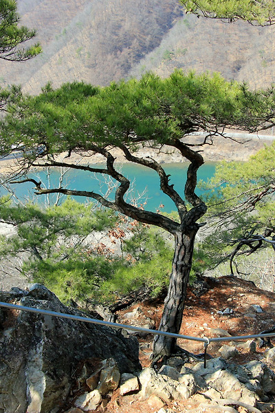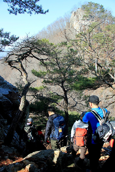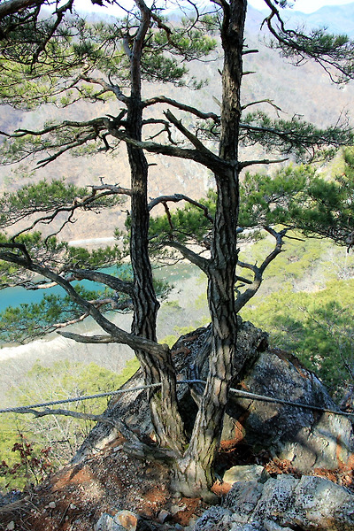8봉을 오르며 직벽에서 자라는 소나무를..