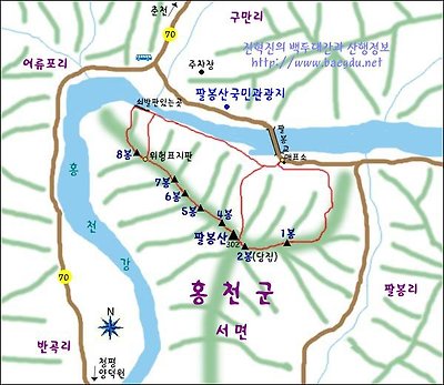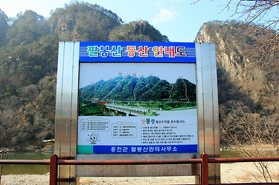 팔봉산 주차장을 나서니 홍천강 인도에는 등산안내도가 보이고..