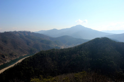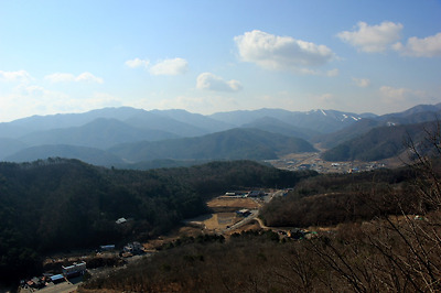 멀리 두릉산, 종자산으로 가는 능선이 조망된다.