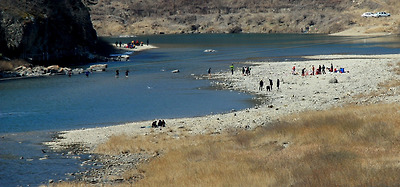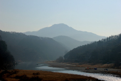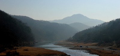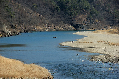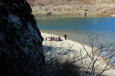 낮에는 아침과는 달리 포근해져 강가에서 여가시간을 갖는 산객들이 많이 보인다.