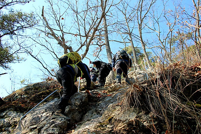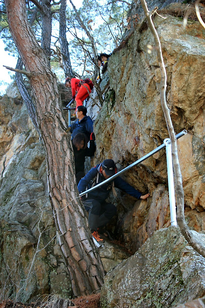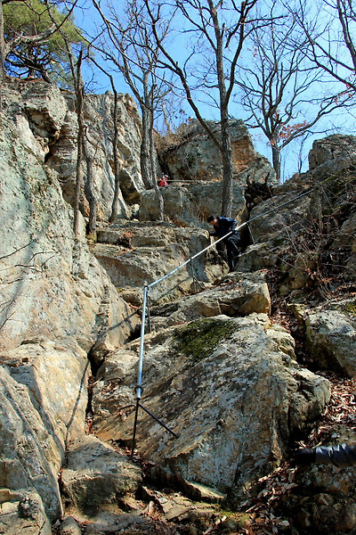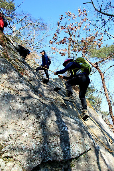 2봉의 오름길도 만만치 않아 설치된 밧줄을 잡고..