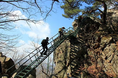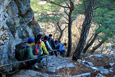 높이는 327m의 낮은 산이지만 산세가 아름답고 거친 바위로 인해 산행이 만만치 않지만