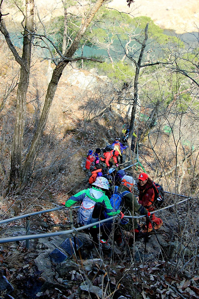 모두들 긴장을 늦추지 않고 하산길을 내딛는다.