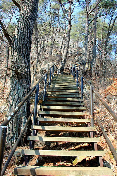 안부를 지나 길게 이어진 151계단으로 올라선다.