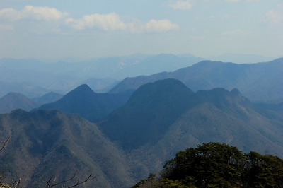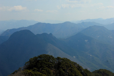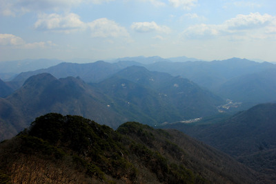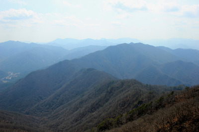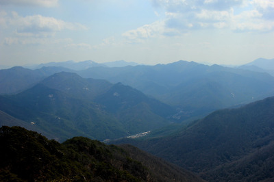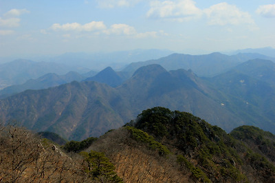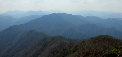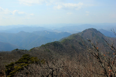 남군자산과 그 뒤로 대야산, 중대봉, 조항산..