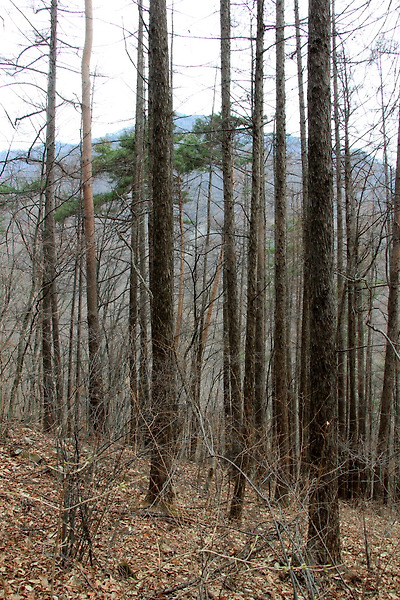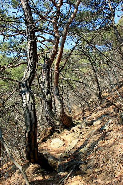 하산하며 바라본 산길 옆의 명품송을 눈으로 즐기며..