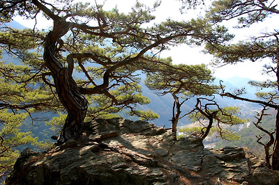능선의 거센 비 바람을 맞으며 자랐을 멋진 소나무와..