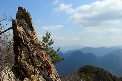 등로는 뾰족한 바위가 나있는 까칠한 능선으로 진행되고..