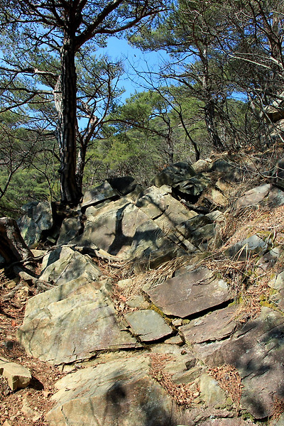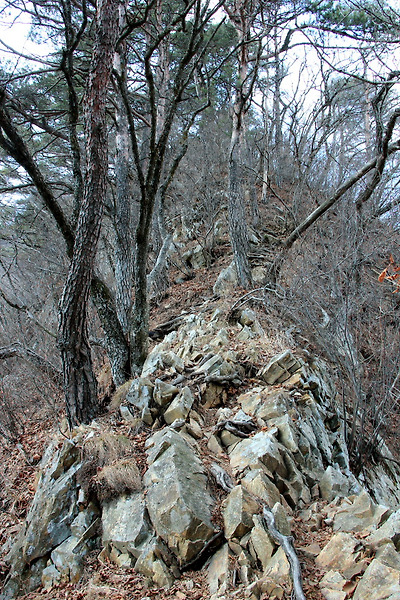 서서히 고도를 높여 작은 바위가 널려있는 등로로 올라선다.